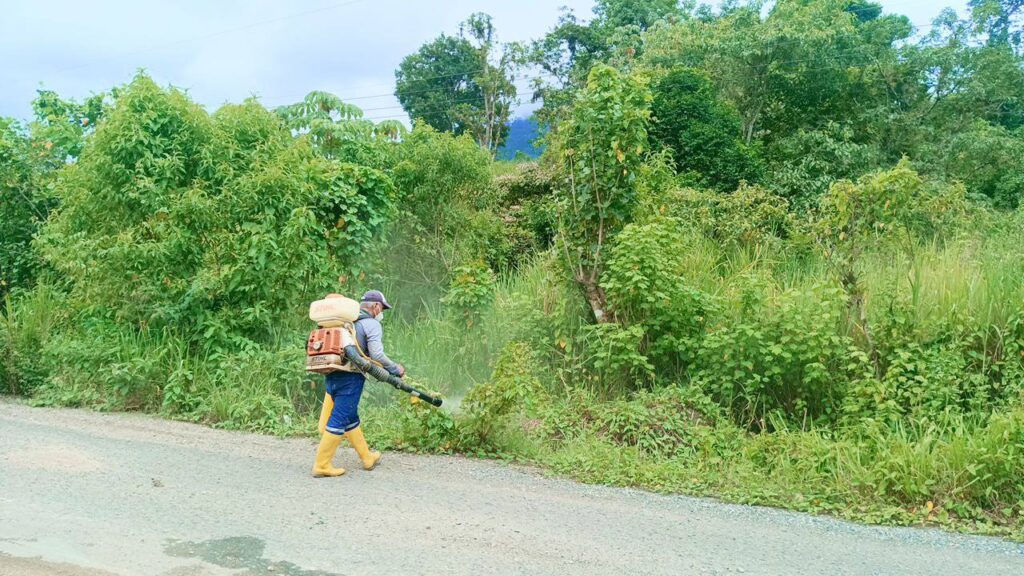 El Gobierno Parroquial La Bocana realiza fumigación de la maleza y el desbroce de árboles en los sitios Santa Teresita y Las Pampas.